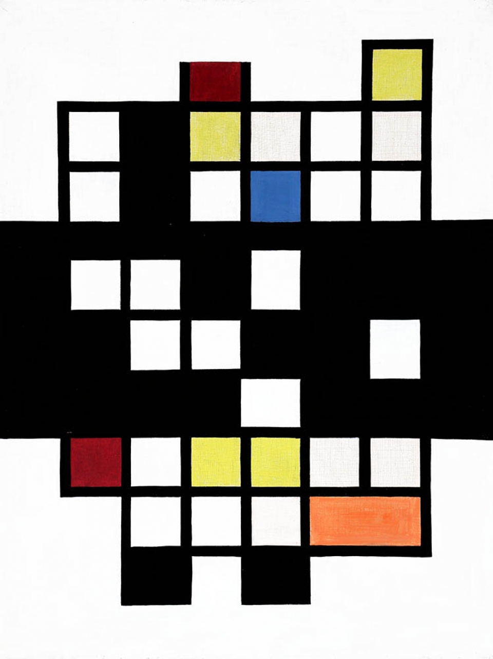 ROLANDO MONTI, 1906 - 1991, Omaggio a De Steijl, 1967, Olio su tela, cm. 100 x 76, Firmato e datato sul retro, Timbro Archivio Monti sul retro, Prov. Collezione Privata,