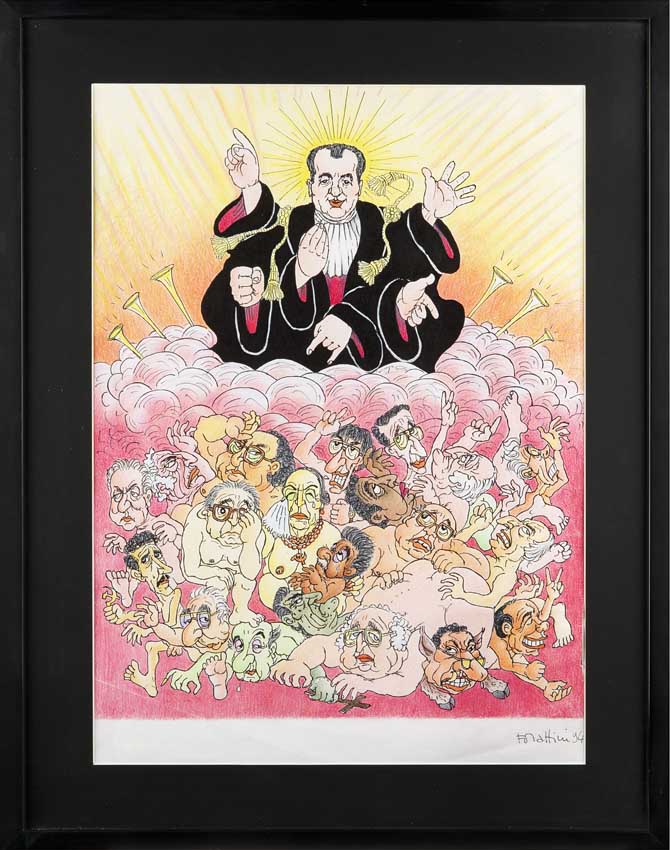 Originali "Tangentopoli: i protagonisti" 1994 litografia con intervento a mano dell'artista a colori (cm 40x30)