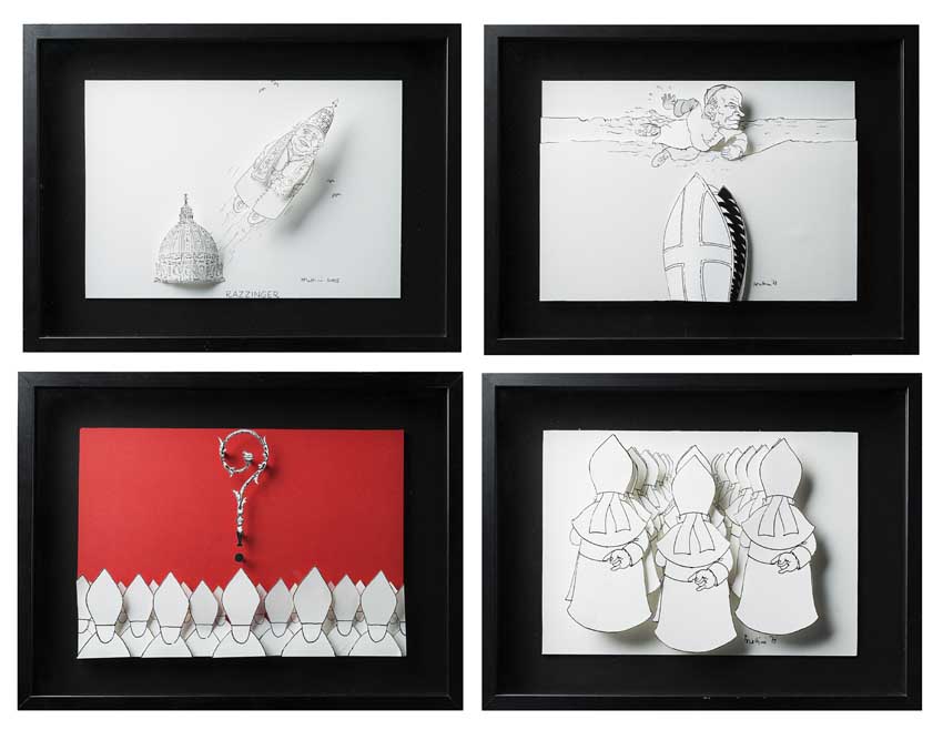 "Da Paolo VI a Benedetto XVI" gruppo di quattro cartoncini in 3D in bianco e...