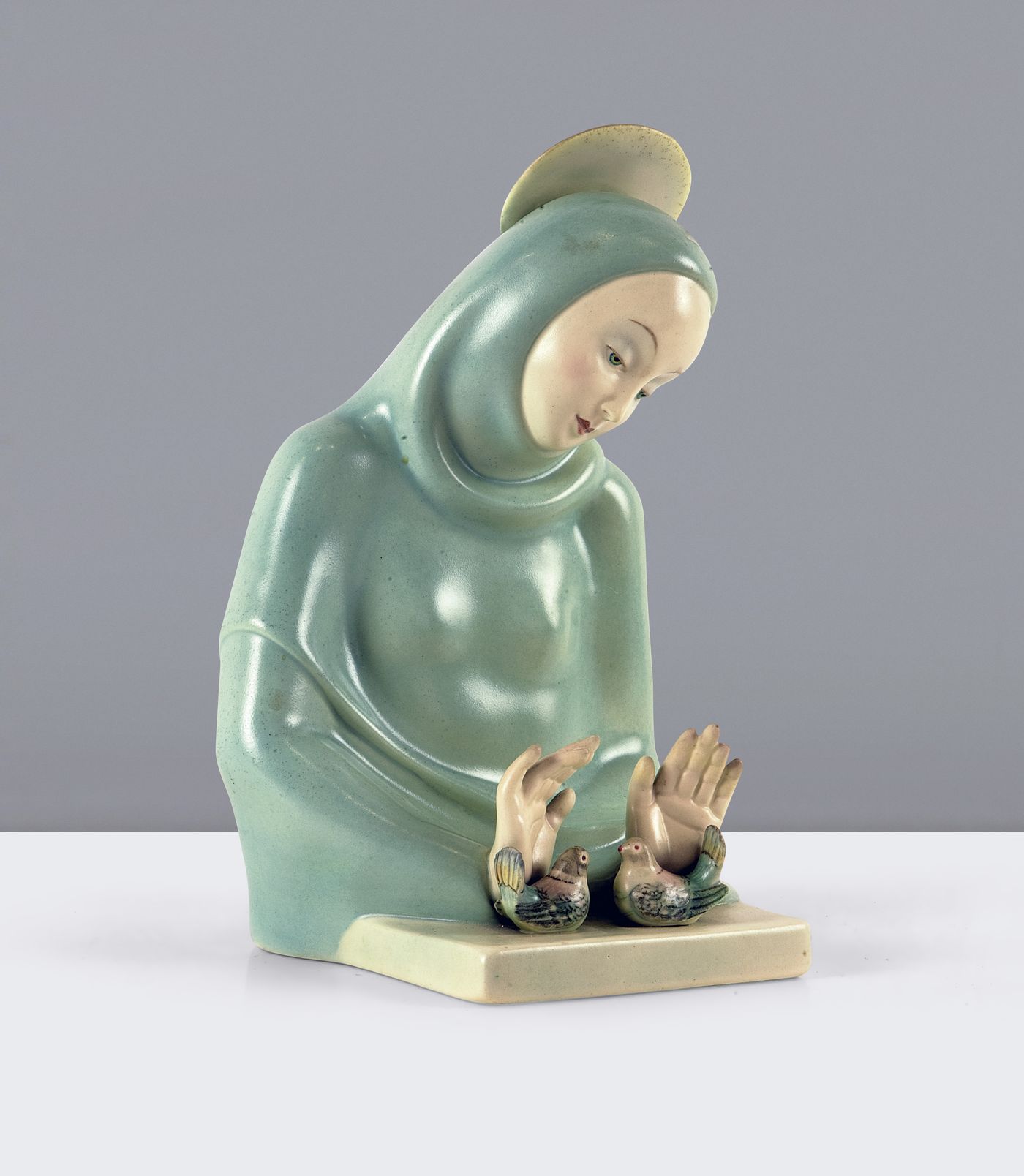 SCAVINI KONIG HELEN (Torino 1886 - 1974) - "Madonna dell'Amore", 29x19 ceramica smaltata in policromia. Opera marcata alla base. Bibl.: Alfonso Panzetta, Le ceramiche Lenci 1928/1964 - Catalogo generale dell'Archivio storico della Manifattura, Allemandi, Torino, 1992, pag. 259, n° 939/940.