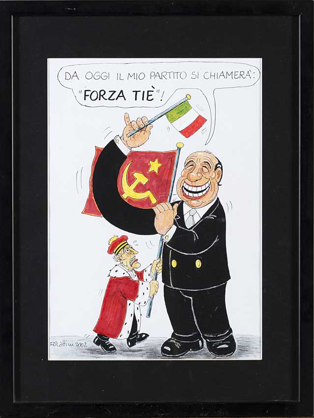 Originali "Contrasti tra Berlusconi e la Magistratura" 2002 interventi a colori dell'artista su base litografica. In cornice (cm 30x20)