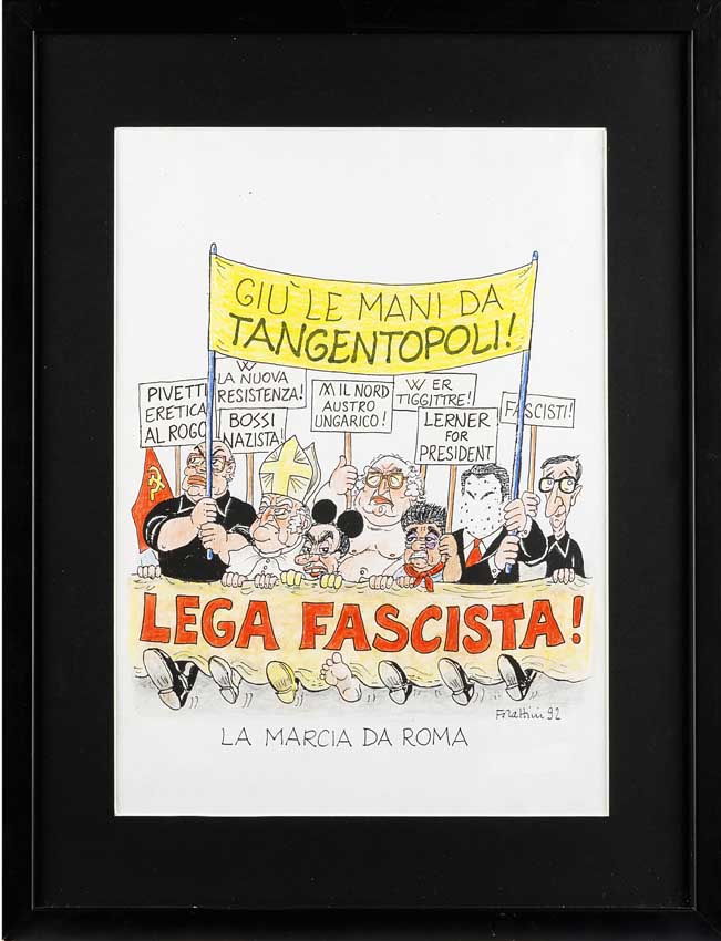 Originali "I partiti attaccano la Lega" personaggi vari, 1992 litografia con...