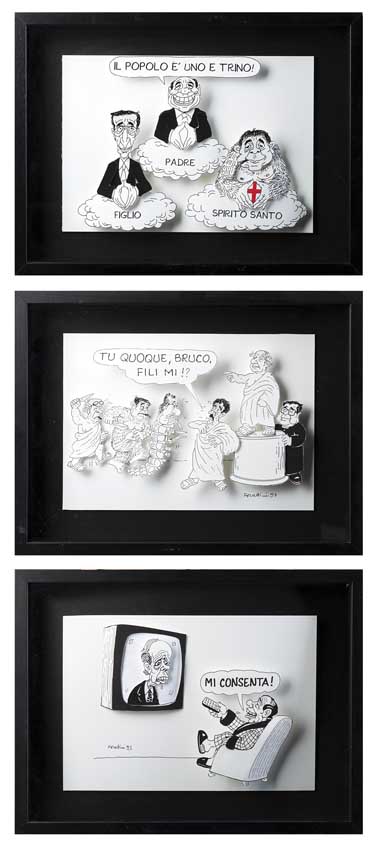 Lotto 230 | "Protagonisti della seconda Repubblica" gruppo di tre cartoncini in 3D in...