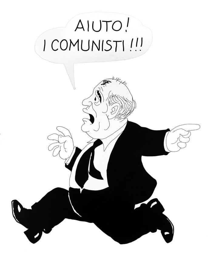 "Mikhail Gorbaciov: aiuto i comunisti!" con fumetto, sagoma in bianco e nero