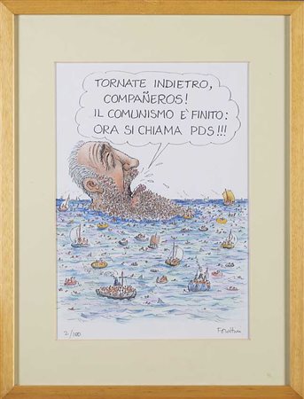 Originali "Fidel Castro e il Pds" litografia con coloritura a mano, edizione...