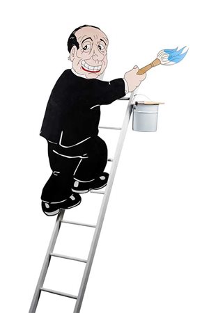 "Berlusconi con pennello" sagoma e secchio in alluminio con scala