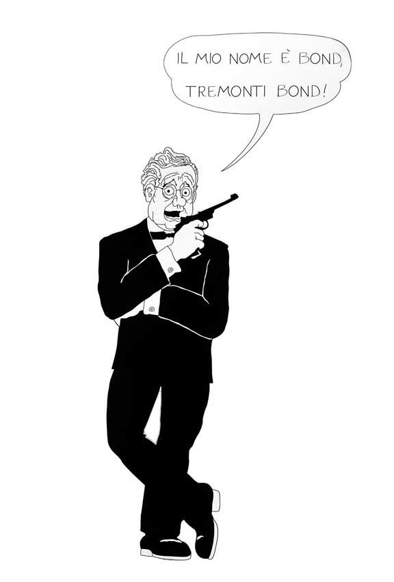 "Tremonti Bond" Giulio Tremonti, con fumetto sagoma in bianco e nero