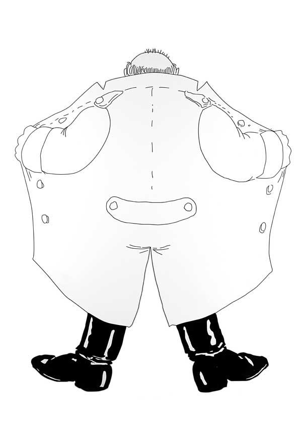 "Bettino Craxi maniaco con impermeabile" sagoma in bianco e nero (cm 160x130)
