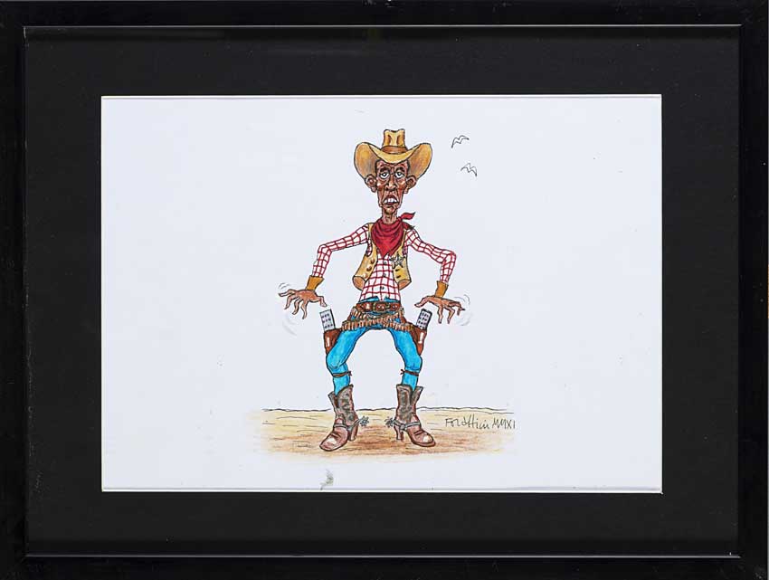 Originali "Barack Obama da il via alle operazioni in Pakistan" 2011 tecnica mista a colori su carta. In cornice (cm 20x30)