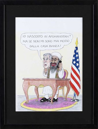 Originali "Maschera Bush/Bin Laden" 2001 coloritura dell'artista su base litografica (cm 30x20)