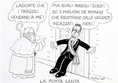Originali: "La Porta Santa Papa Giovanni Paolo II e Francesco Rutelli sindaco di Roma" 2000 pennarello su carta bianco e nero (cm 20x30). In cornice