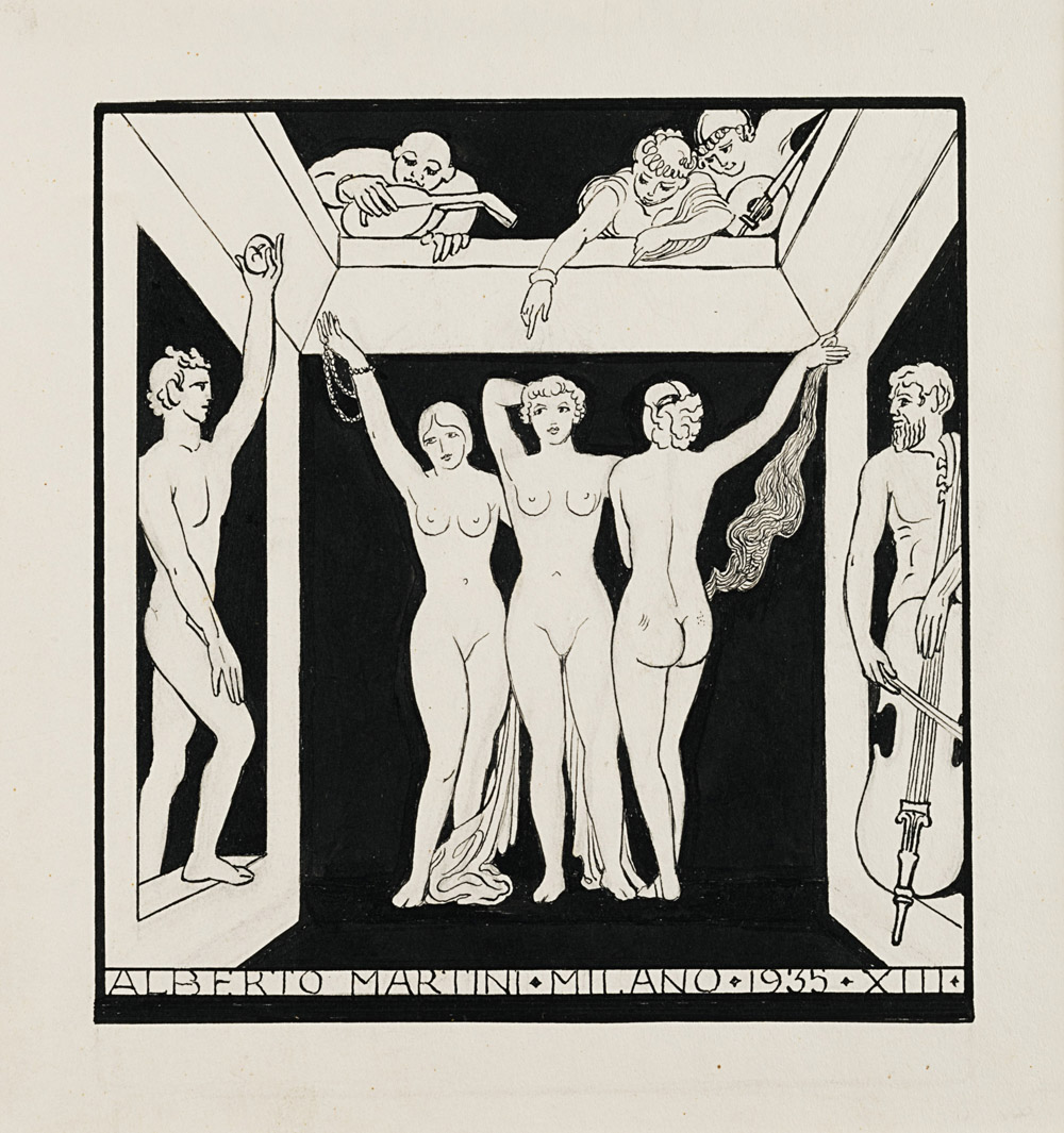 Alberto Martini (Oderzo 1876 - Milano 1954) - "Danza" 1935 inchiostro su carta, cm 21x20 Firmato e datato "Milano 1935 XII" in basso Provenienza Galleria Annunciata, Milano Collezione privata, Milano