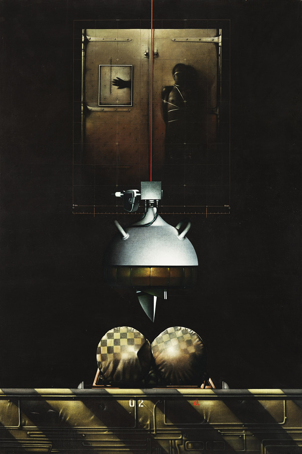 Sergio Sarri (Torino 1938) - "Il pendolo" 1979 acrilico su tela, cm 195x130 Firmato, titolato e datato 1979 al retro Provenienza Collezione privata Esposizioni "Sarri. Opere recenti" Gastaldelli Arte Contemporanea, Milano, 1979 Bibliografia R.Sarri "Les chambres mécaniques de Sergio Sarri" Parigi, Georges Fall, 1984, p.26 ill. U.Paganini, C.Ragni "Sergio Sarri. Opere dal 1964 al 2008. Catalogo Ragionato" Forlì, Ed.Overtime Art, 2009, p.205 n.534 ill.a colori Opera registrata presso l'Archivio Sergio Sarri, Forlì, con il n.SS-02-0979