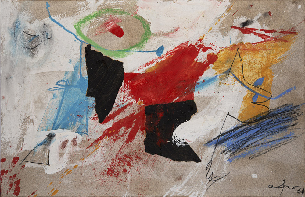 Afro (Udine 1912 - Zurigo 1976) - "Senza titolo" 1961 tecnica mista su carta, cm 32x50 Firmato e datato 61 in basso a destra Provenienza Studio Palazzoli, Milano Collezione privata, Pavia Opera accompagnata da certificato di autenticità su fotografia rilasciato dall'Archivio Afro, a cura di Mario Graziani, Roma in data 8/10/2015 e registrata con il n. 61B117