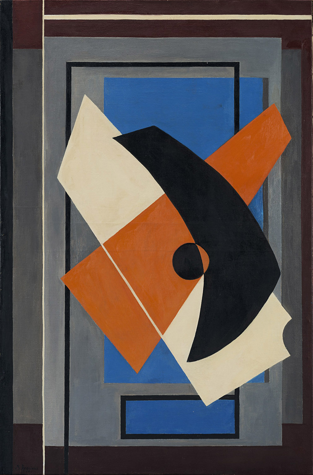 Mauro Reggiani (Nonantola 1897 - Milano 1980) - "Comp" 1939 olio su tela, cm 90,5x60 Firmato in basso a sinistra Provenienza Collezione privata, Genova Opera accompagnata da certificato di autenticità su fotografia rilasciato dal Prof. Luciano Caramel in data 4 aprile 2009