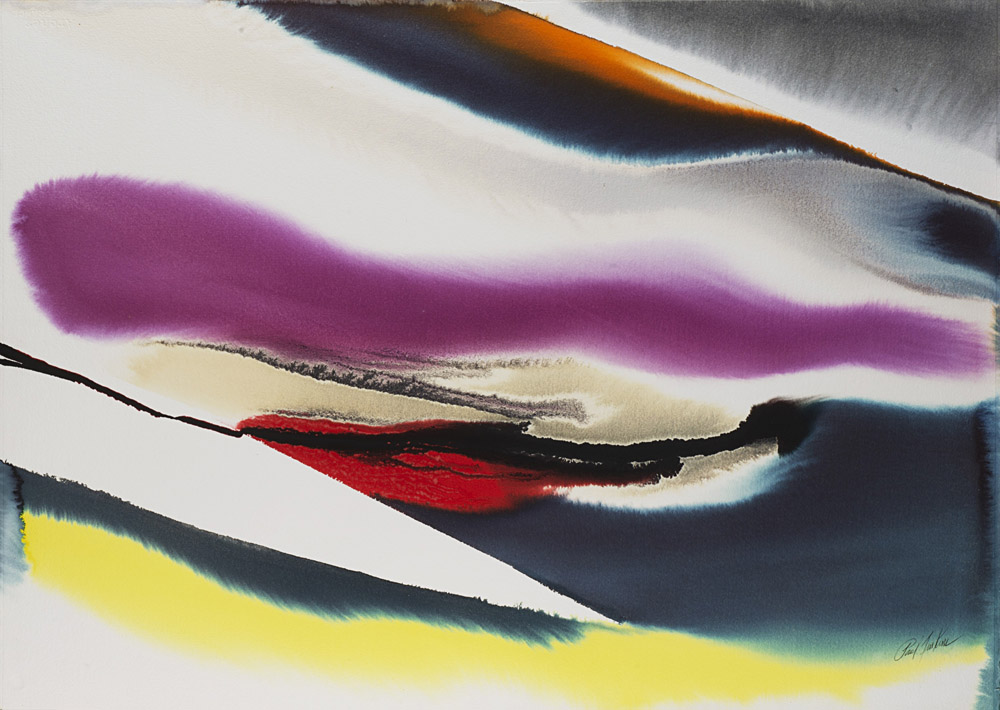 Paul Jenkins (Kansas City 1923 - 2012) - "Phenomena Hamlet's Night Walk" 1976 gouache su cartoncino, cm 76x106 Firmato in basso a destra. Firmato, titolato e datato 1976 al retro Provenienza Galerie Ehrensperger, Zurigo Collezione privata, Milano