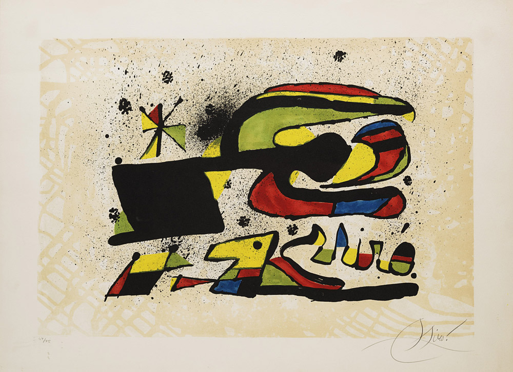 Joan Mirò (Barcellona 1893 - Palma Di Maiorca 1983) - "Gos i Ocell, aus der Mappe: Homentage a Gaudi" 1979 litografia a colori, cm 56x75 Firmato in basso a destra e numerato es.45/75 Provenienza Galleria Maeght, Barcellona Collezione privata, Brescia