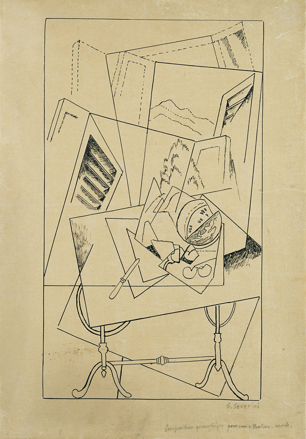 Gino Severini (Cortona 1883 - Parigi 1966) - "Composition geometrique pour une nature morte" bozzetto per "Finestra su Forte dei Marmi" 1938 inchiostro su carta applicata su tela, cm 43x29 Firmato e titolato in basso a destra Opera accompagnata da certificato di autenticità su fotografia rilasciato da Romana Severini Brunori in data 10.09.2015