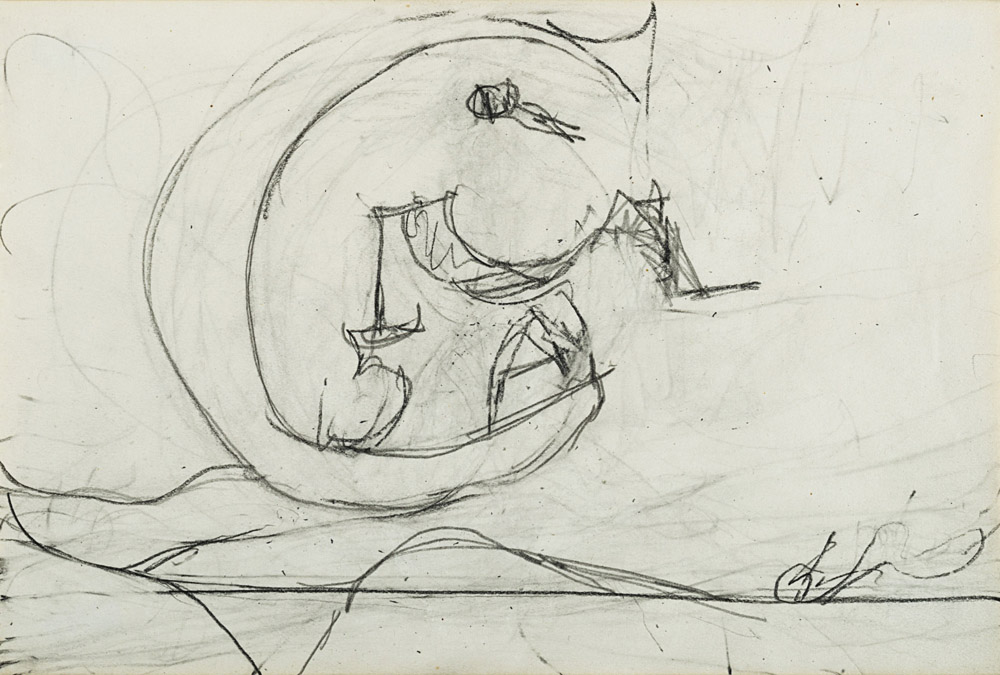 Osvaldo Licini (Monte Vidon Corrado 1894 - 1958) - "Personaggio" 1942 ca. matita su carta, cm 18x27 Provenienza Collezione Caterina Hellstrom Riccitelli, Ascoli Piceno Collezione privata, Milano Opera accompagnata da certificato di autenticità su fotografia rilasciato da Caterina Hellstrom Riccitielli in data 25-04-1988