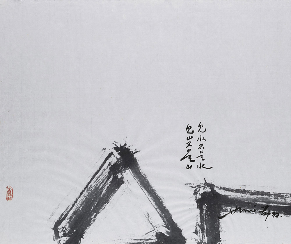 Chin Hsiao (Shanghai 1935) - "La montagna non sembra montagna e il lago non sembra lago" 1977 inchiostro su carta Giappone, cm 50x60 Firmato, titolato e datato 77 in basso a destra