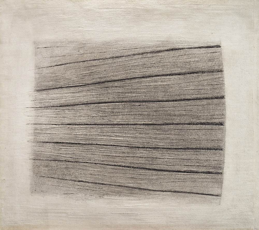 Bice Lazzari (Venezia 1900 - Roma 1981) - "Sequenze" 1964 colla, sabbia e tempera su tela, cm 89x100 Firmato e datato "Roma 3.1964" al retro Provenienza Collezione privata, Milano Esposizioni Centro Comunale di Cultura, Città di Valenza, 21 novembre 1981 - 16 dicembre 1981 Bibliografia P. Fossati "Bice Lazzari. Opere 1925-1981" Milano, Electa, 1984 p.100 n.134 ill.