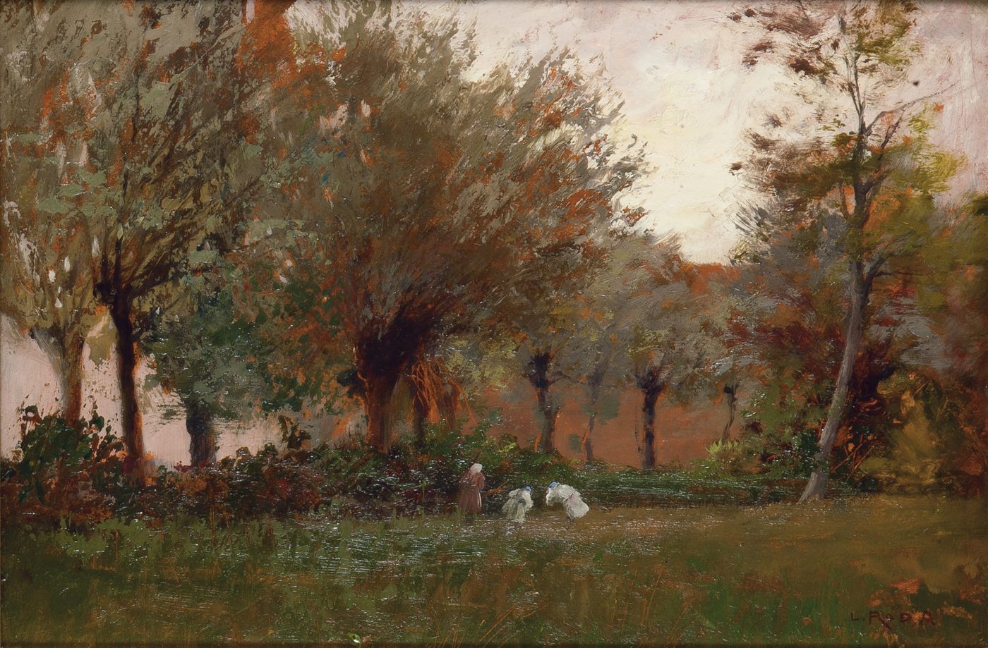 RODA LEONARDO (Racconigi (CN) 1868 - 1933) - "Nel bosco", 23x33 olio su...