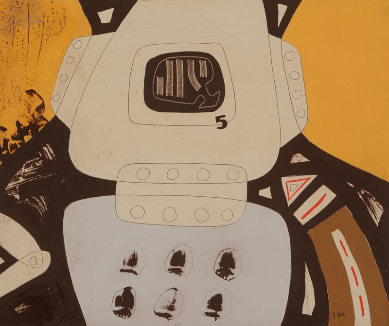 Giuliano Ghelli, Firenze 1944 - 2014, Cinque e giallo , Olio su tela, cm. 50x60, Firmato in basso a destra. Sul verso: firma, titolo, n° 429 e dimensioni; Timbro "Galleria d'Arte Moderna San Gallo", Firenze., ,