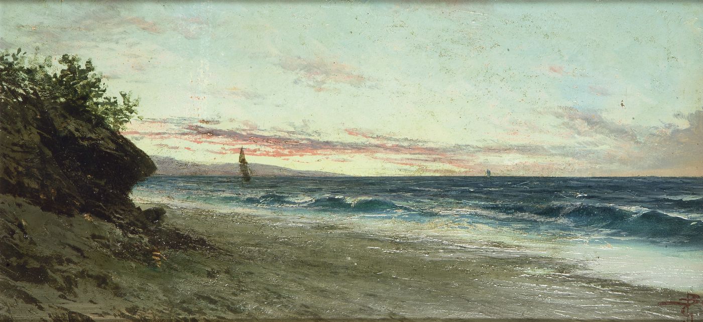 BO GIACINTO (Montanaro (TO) 1832 - 1912 Torino) - "Marina", 23x48 olio su cartone. Opera firmata in basso a destra