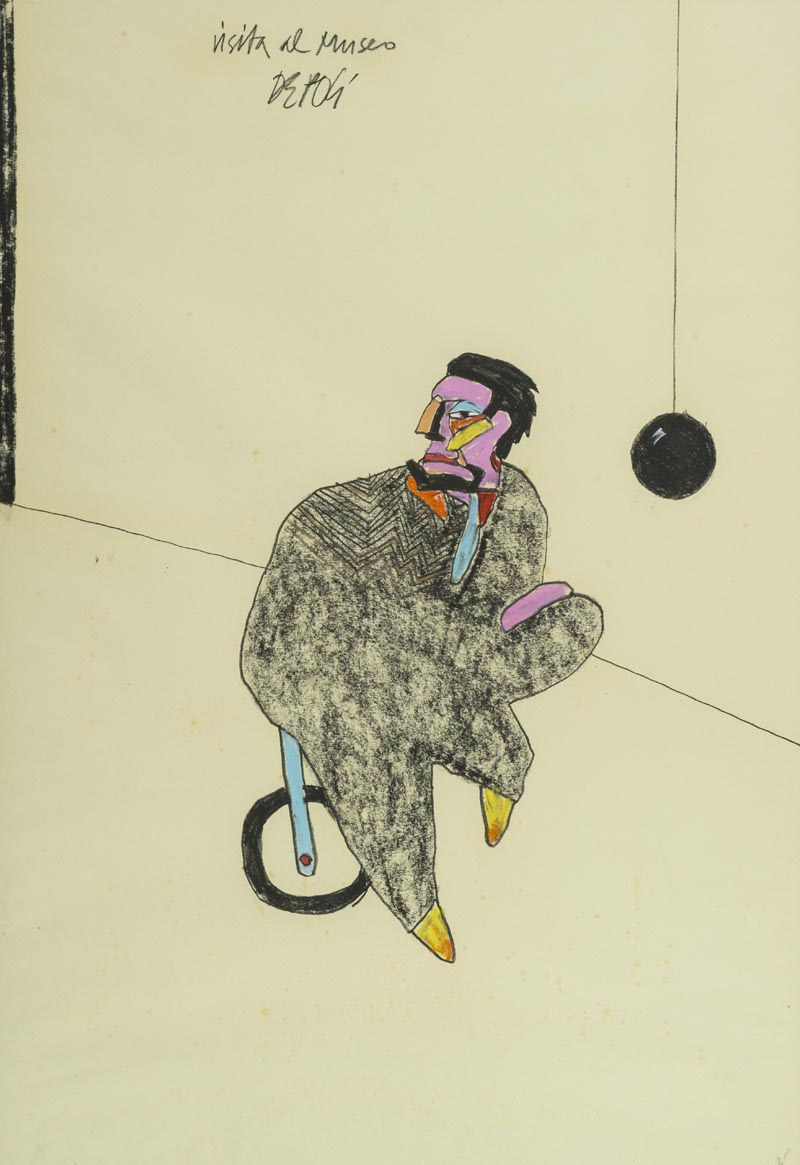 Fabio De Poli, Genova 1947 - , Visita al museo , Tecnica mista su cartoncino,...