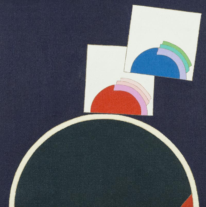 Eugenio Carmi, Genova 1920 - , Fuga verso il bello 2005, Acrilici e vernice su tela di juta, cm. 50x50, Sul verso: firma e data., , Autentica dell'Artista su foto.