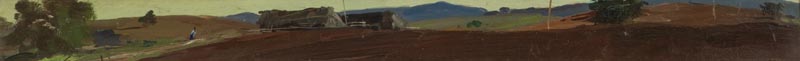 Masaniello Luschi, Livorno 1942 - Livorno 1995, Paesaggio , Olio su tavola, cm. 5,5x58, Firmato in basso a sinistra., ,