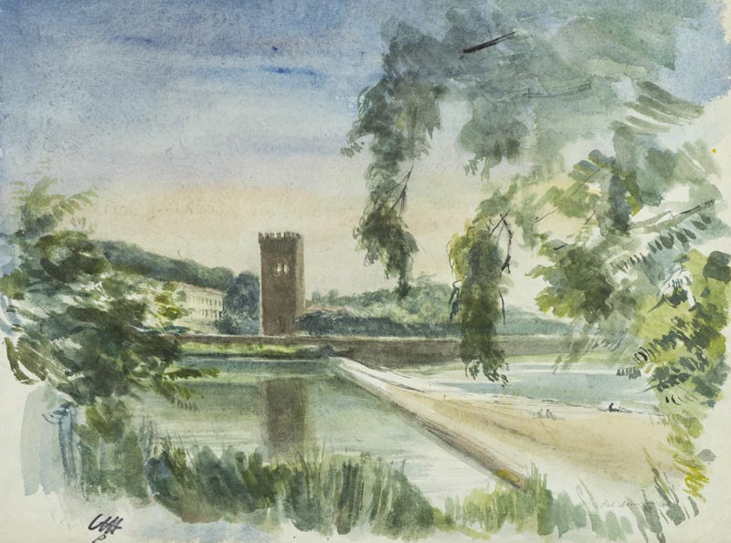 Pietro Annigoni, Milano 1910 - Firenze 1988, Veduta di Firenze , Sanguigna su...