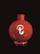 Vaso in maiolica policroma a fondo rosso scuro con figurazione in grigio