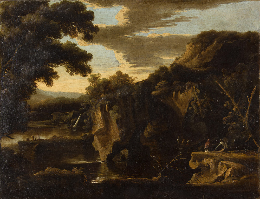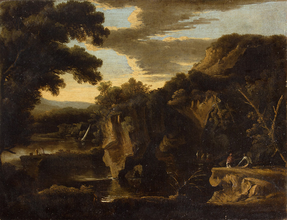 Lotto 17 | Cerchia di Salvator Rosa Paesaggio con Figure Olio su tela, cm. 48,5 x 63,5