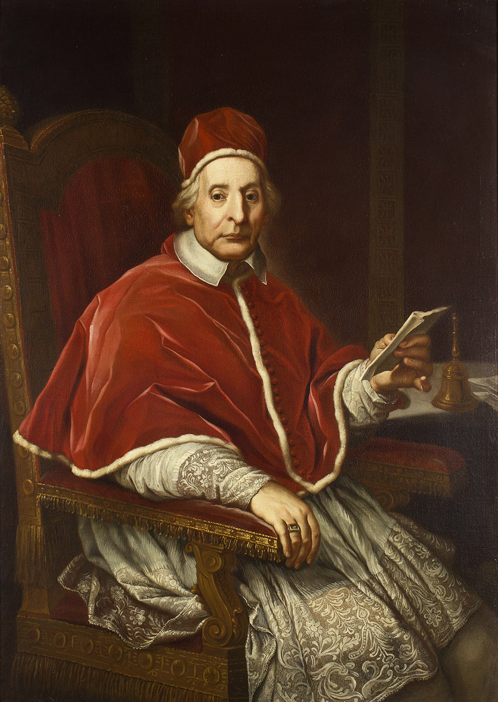 da Agostino Masucci Ritratto di papa Clemente XII Corsini Olio su tela, cm. 127 x 92 L’opera è da ritenere una copia coeva di un medesimo ritratto di papa Clemente XII Corsini di Agostino Masucci, in ubicazione privata sconosciuta, noto anche in una seconda versione appartenuta all’antiquario romano Mario Bigetti dove accanto al pontefice compariva anche il cardinal Corsini (Fototeca Zeri, scheda 61366, busta 0575, fasc.1). La qualità della nostra versione, come lo stato di conservazione, è buona, tanto da potersi ipotizzare una provenienza dalla stessa bottega del Masucci.