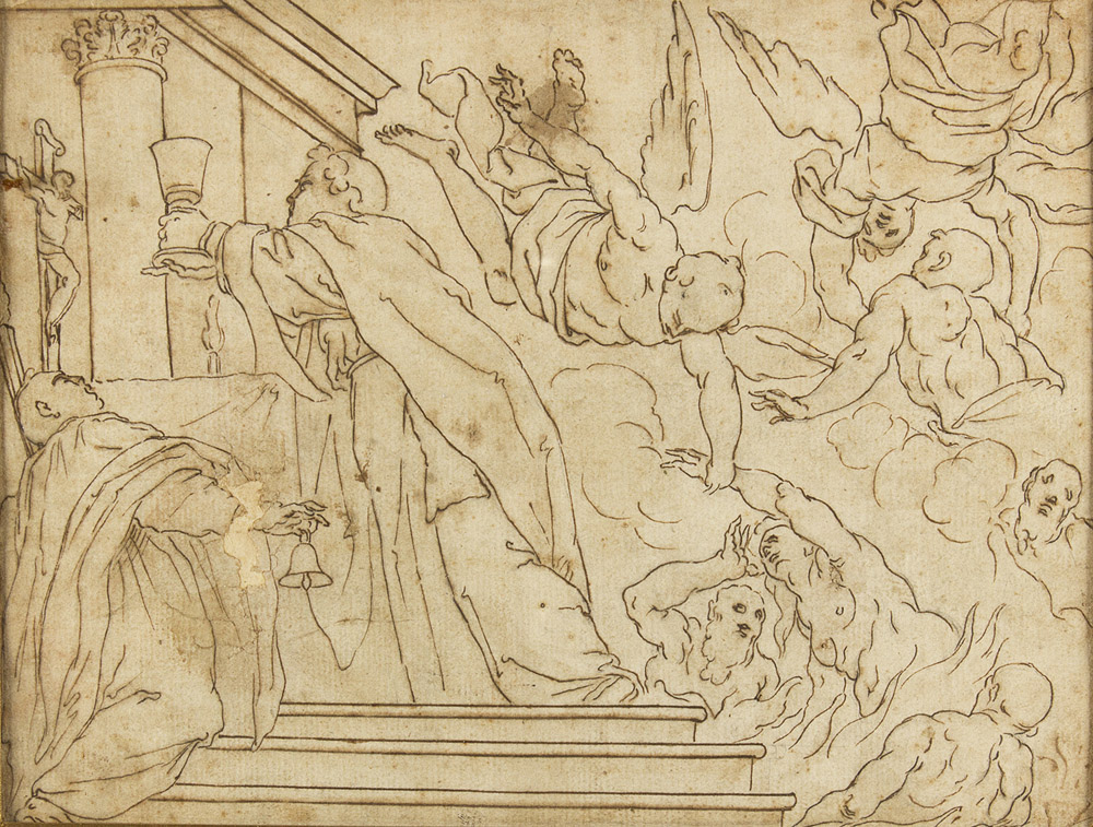 Maestro tiepolesco Studio per una scena eucaristica Penna su carta, cm. 19,5 x 26