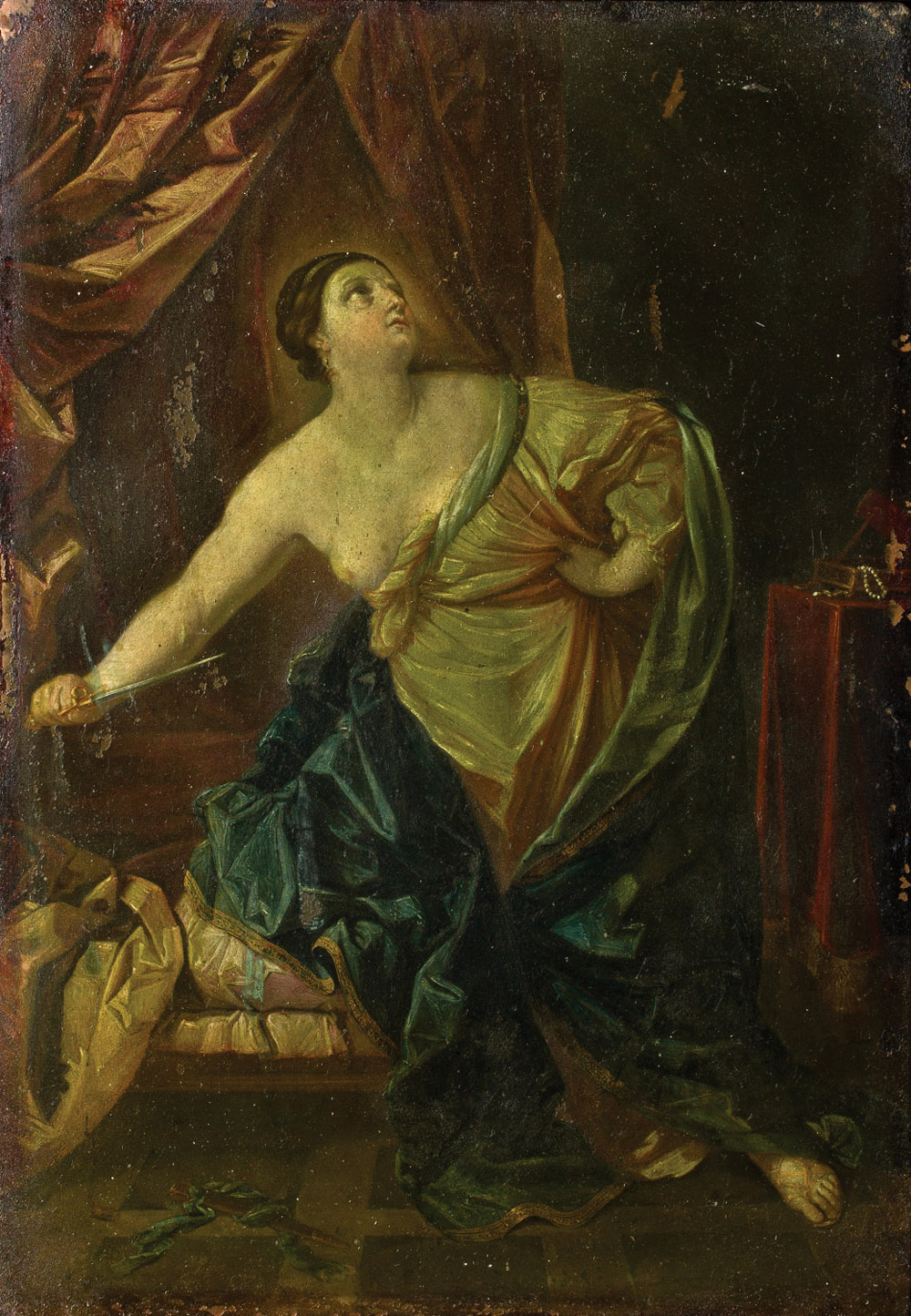 Giovan Battista Bolognini (attr.) (Bologna, 1611-12/1688) Il suicidio di Lucrezia Olio su rame, cm. 31,5 x 21 L’opera, di grande qualità, è una copia dal ben noto prototipo conservato in due versioni presso il Neus palais di Potsdam e la Galleria Spada di Roma. La tela originaria ha dimensioni importanti (235 x 150 cm nella versione della Galleria Spada e 215 x 151 cm in quella di Potsdam) ma viene riproposta nel nostro piccolo rame con acuta minuzia e rispettando fedelmente l’ipostazione del maestro, solo con qualche piccola variante nella stesura del panneggio e nel drappo setoso che apre la scena a mò di sipario nell’angolo in alto a sinistra del quadro. In questa sede proponiamo un attribuzione al rame a Giovan Battista Bolognini, noto allievo e copista del Reni e caratterizzato, nelle opere note, da una profonda conoscenza dello stile del maestro, interpretato con una pennellata spesso più vibrata e sfrangiata. Citiamo come possibili confronti il S.Ubaldo vescovo nella chiesa di S.Pietro al Monte di Bologna o l’Immacolata Concezione e Santi nel collegio di S.Luigi a Bologna, etrambi caratterizzati da una straordinaria imitazione della tecnica reniana seppure resa con acuta personalità. (si veda. Nicosetta Roio, Giovanni Battista Bolognini, in La Scuola di Guido Reni, a cura di E.Negro e M.Pirondini, Modena 1992, pp. 33-44, tavv. 14, 20; nel testo, peraltro, la Roio cita l’esistenza di una copia del Suicidio di Lucrezia in collezione privata a Roma, non pubblicandone però foto, tecnica d’esecuzione e misure).