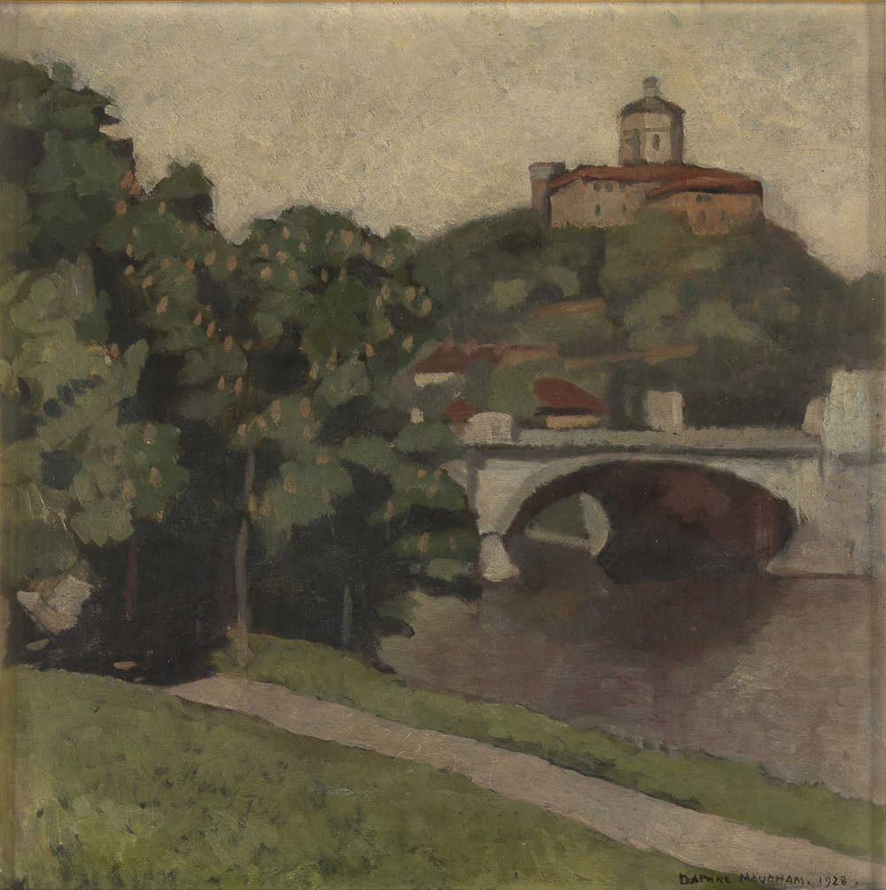 DAPHNE MAUGHAM CASORATI Londra 1897 - Torino 1982 Monte dei Cappuccini, 1928 Olio su tavola cm 50 x 49 circa Firma e data in basso a destra: Daphne Maugham 1928 Esposizioni Daphne Maugham Casorati, Archivio di Stato, Torino, 10 giugno - 18 luglio 2004, mostra a cura di M. Bandini