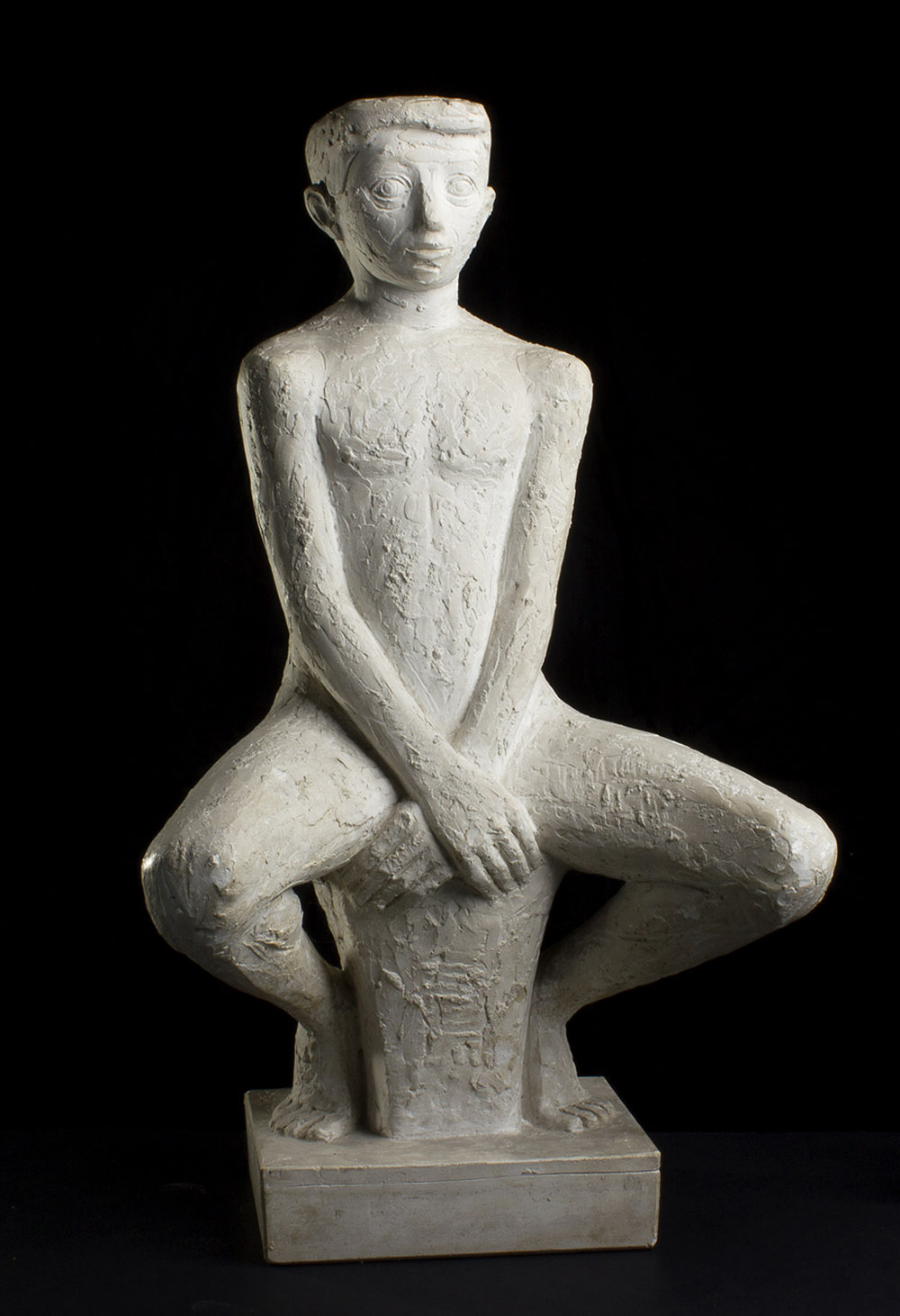 GIUSEPPE SCALVINI Milano 1908 - 2003 Giovane seduto, anni ‘50 circa Scultura in gesso, h. cm 61 (compresa la base) Firma sulla base: G Scalvini