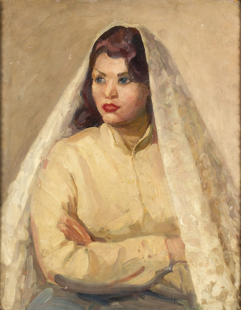 NINO BERTOLETTI Roma 1889 - 1971 La sposa Olio su tavola cm 64 x 50