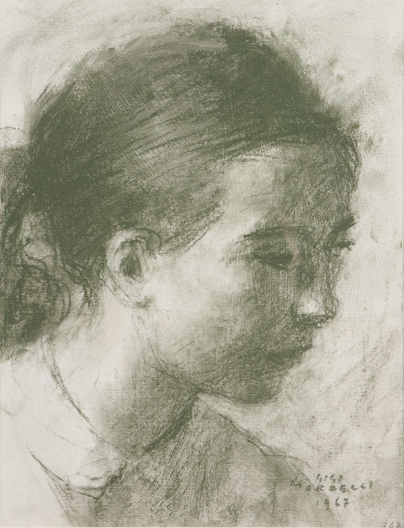 MORBELLI GIGI (Orsara Bormida (AL) 1900 - 1980 Torino) - "Ritratto femminile" 1967, 32X24,5 tecnica mista su carta. Opera firmata e datata in basso a destra