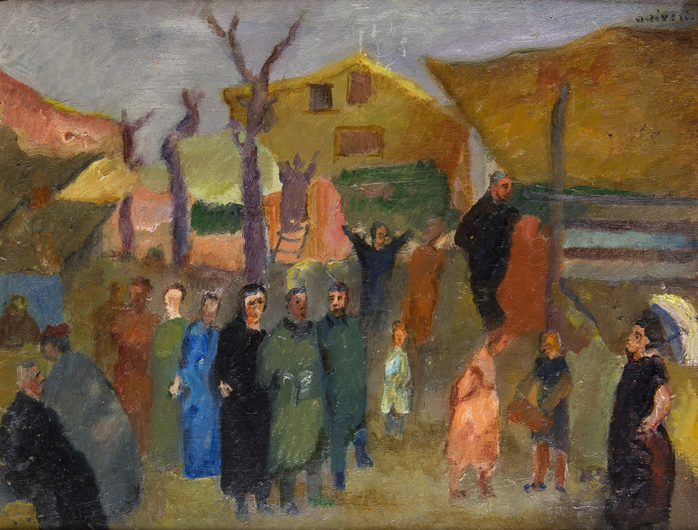 ALBERTO ZIVERI Roma 1908 - 1990 Gente al parco Olio su tavola cm 40,5 x 53,5 circa Firma in alto a destra: a. ziveri