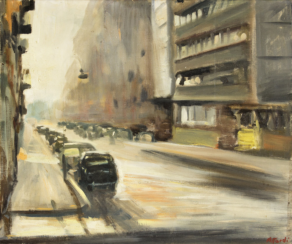 UGO ATTARDI Sori 1923 – Roma 2006 Strada, 1957 Olio su tela 50 x 60 Firma in basso a destra: Attardi Firma e data al retro: Attardi 1957