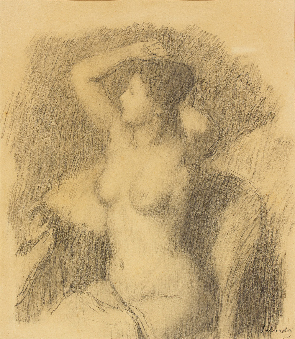 ALDO SALVADORI Milano 1905 – Bergamo 2002 Donna che si pettina Carboncino...