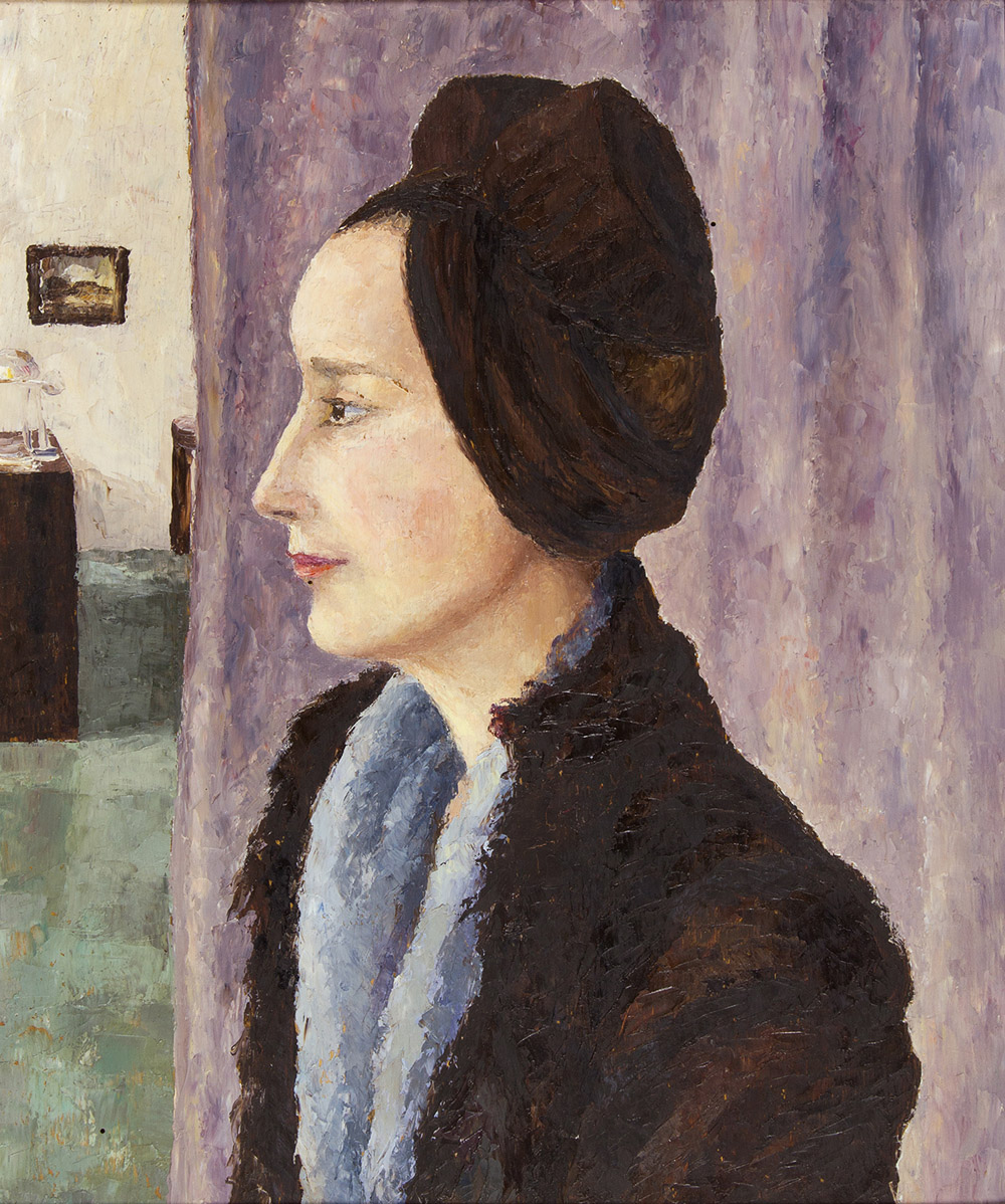 CESARINA GUALINO Casale Monferrato 1890 - Roma 1992 Ritratto di Lula, 1944 Olio su tavola cm 46 x 38,5 Firma, data e titolo al retro: C. Gualino Roma 10 febbraio 1944 Ritratto di Lula [Piatticanonica]