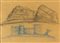 MARIO SIRONI Sassari 1885 – Milano 1961 Paesaggio montano con case e figure Carboncino e cera su cartone cm 30 x 40 Autentica al retro di Mimì Costa