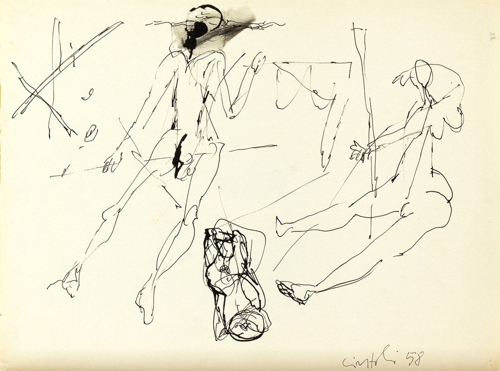 CLAUDIO CINTOLI Imola 1935 - Roma 1978 Studio di figure, 1958 China su carta...