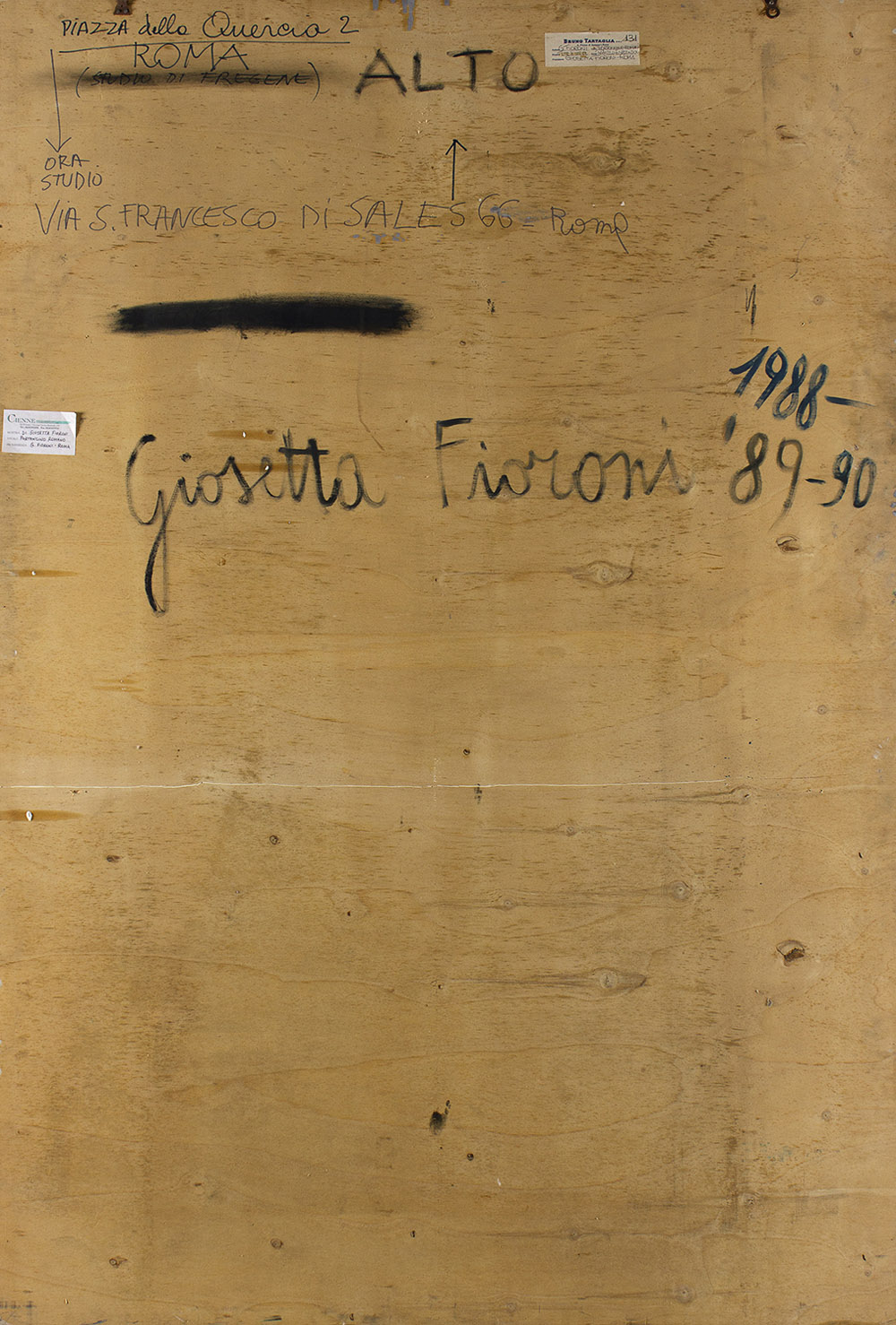 GIOSETTA FIORONI Roma 1932 Portoncino romano, 1988-90 Olio e collage su tavola cm 185 x 125 Firma e data al retro: Giosetta Fioroni 1988-89-90 Etichetta al retro della mostra “Tutte le strade” al Palazzo delle Esposizioni di Roma Esposizioni La beltà di Giosetta Fioroni - Opere dal 1963 al 2003, Mercati di Traiano, Roma 18 marzo - 27 aprile 2003 Pubblicazioni La beltà. Giosetta Fioroni. Opere dal 1963 al 2003, AA.VV., Edizioni Viviani Arte, 2003. Catalogo della mostra