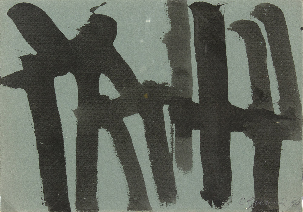 LORENZO GUERRINI Imola 1887 - Roma 1972 Nero su grigio, 1960 Olio su carta cm 25 x 35,5 Firma e data in basso a destra: L Guerrini 60