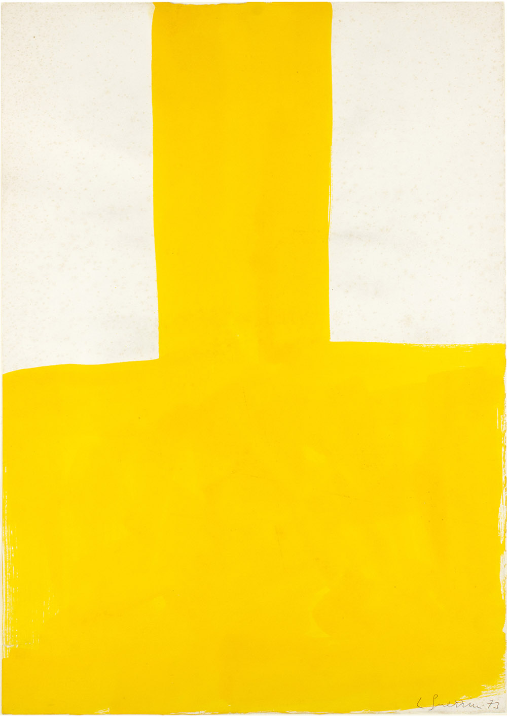 LORENZO GUERRINI Milano 1914 - Roma 2002 Struttura gialla, 1973 Olio su carta cm 70 x 49,5 ca. Firma e data in basso a destra: L Guerrini 73